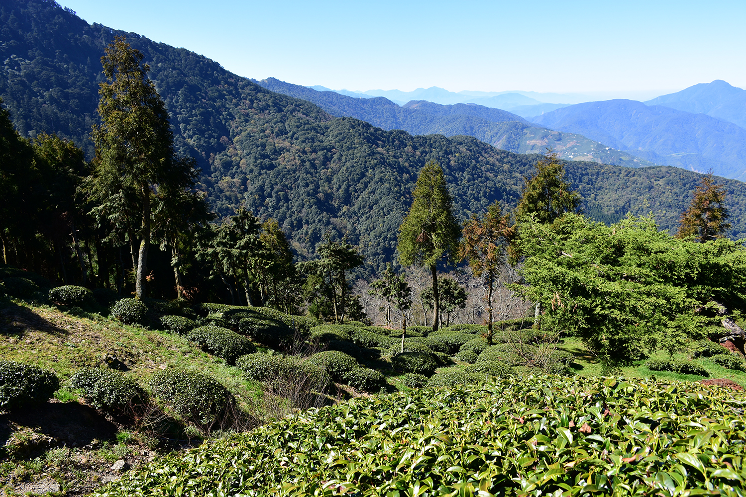 本茶園後方為合歡山西峰,三面皆在群山圍繞之中,站在茶園四面瞭望之山勢極為壯觀與霸氣,堪稱台灣絕美景觀